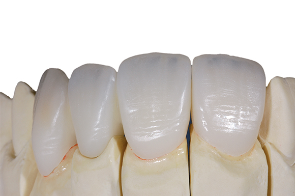 The Oral-Press™ system uses a smooth glass ceramic that is thermo-pressed on specific alloys over metal copings and bridge frameworks.